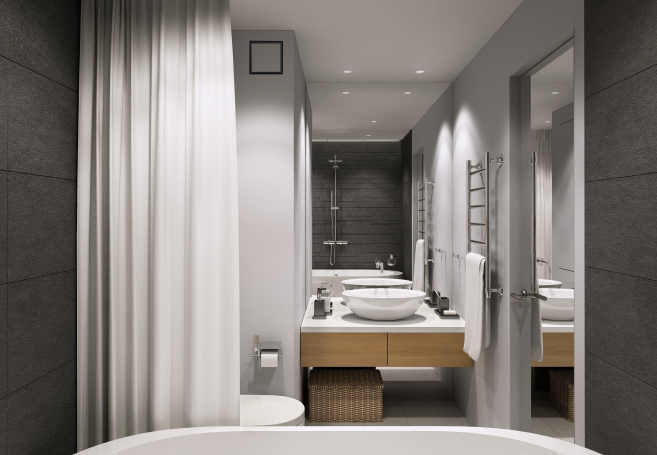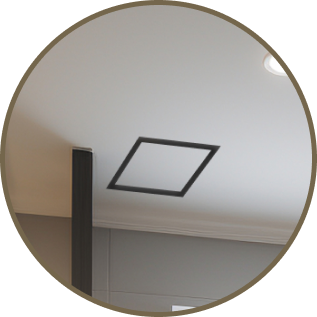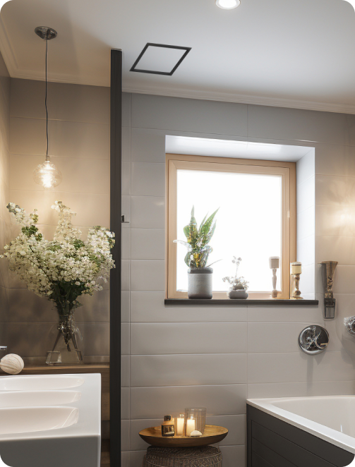 Металлическая вентиляционная решетка со встроенным вытяжным вентилятором. Решетка скрытого монтажа (установка на черновом этапе ремонта, крепления не видно). Используется для стен и потолка под керамогранит, плитку, натуральный камень, декоративную штукатурку и т.д.